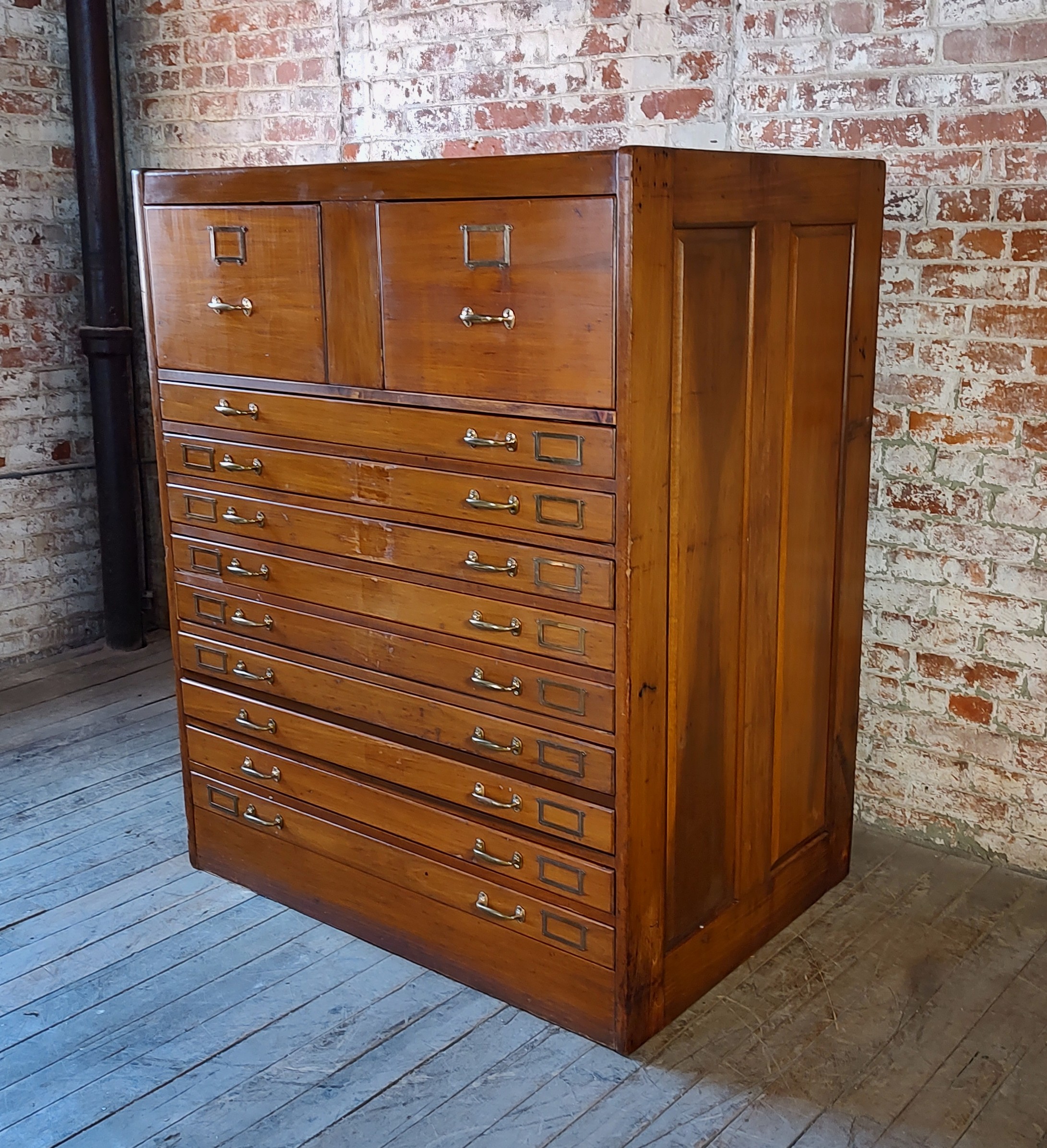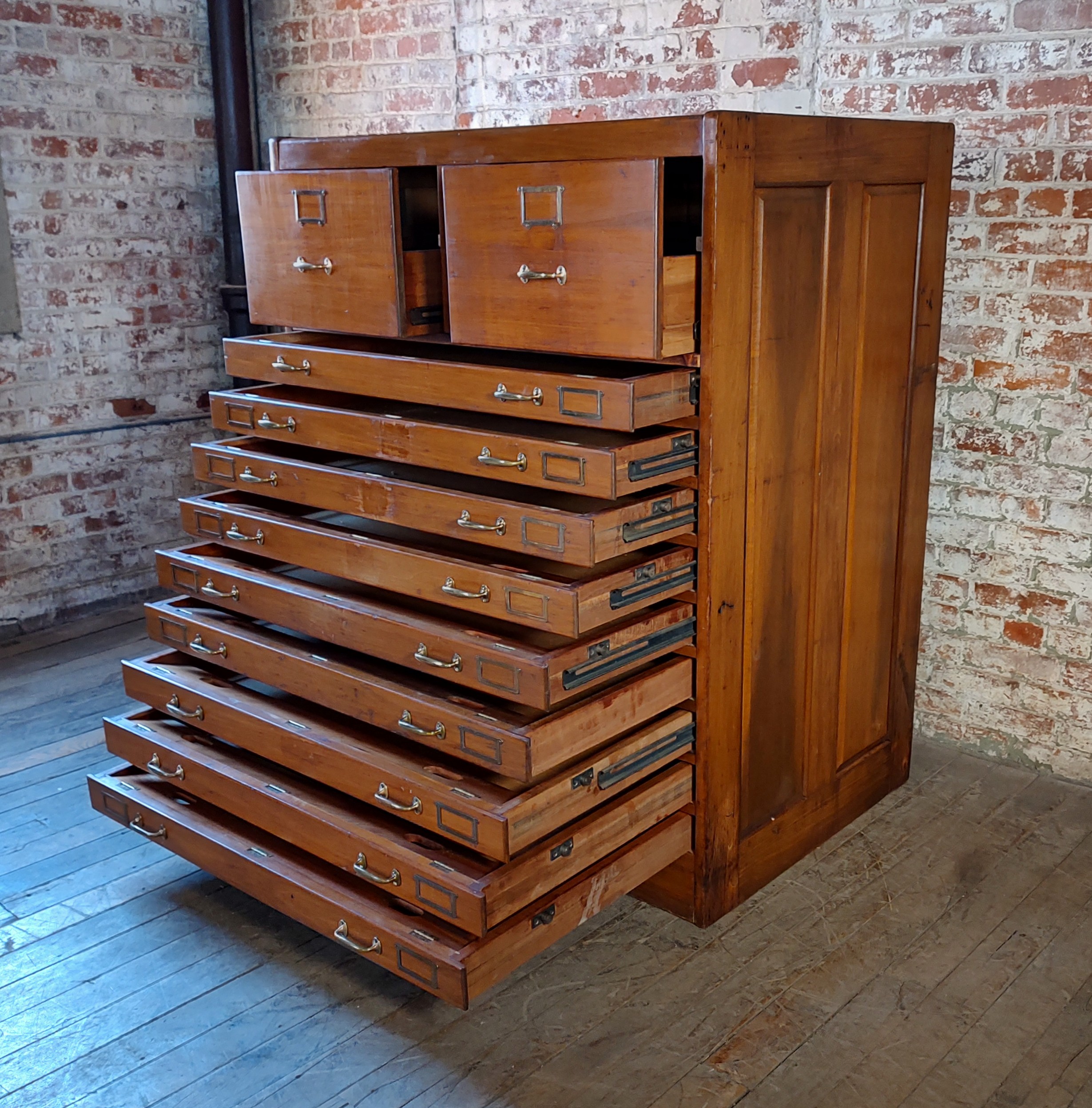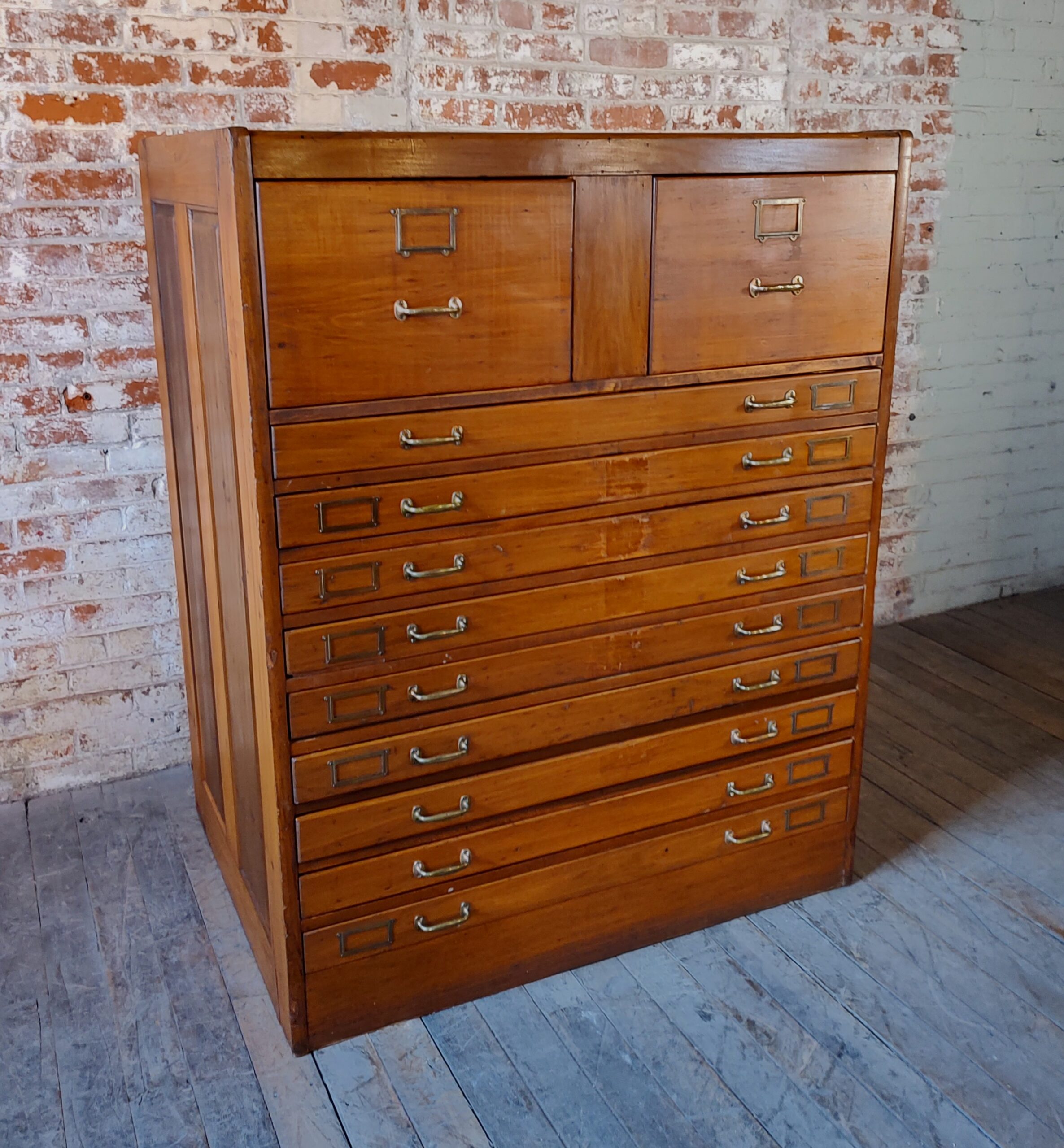 Vintage Blueprint Cabinet with 2 File Drawers & 9 Flat File Drawers
