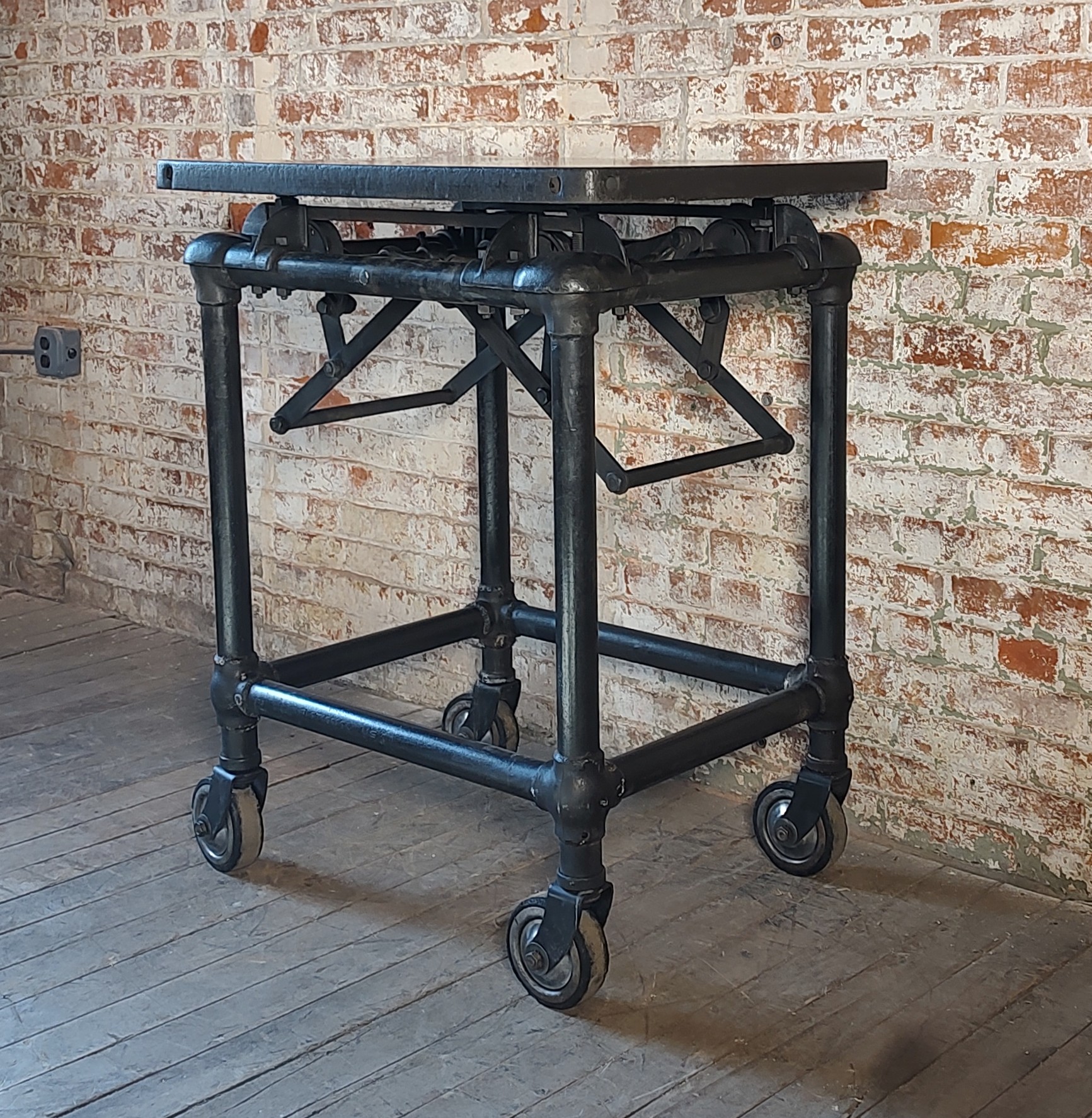 Vintage Adjustable Steel Bar Cart / Display Island
