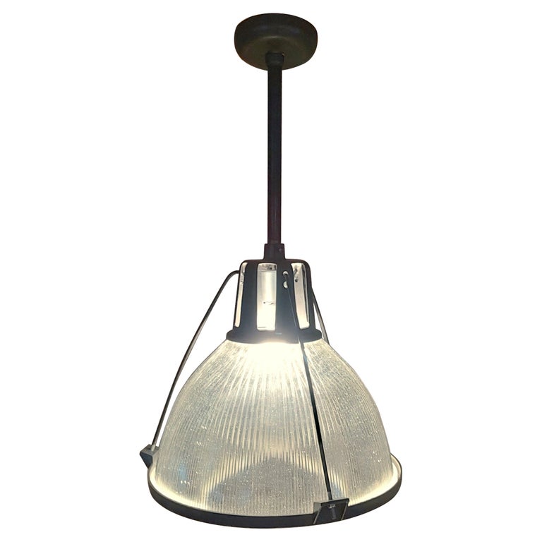 Vintage Industrial Holophane Pendant with 19″ Glass Shade & Vented Cap